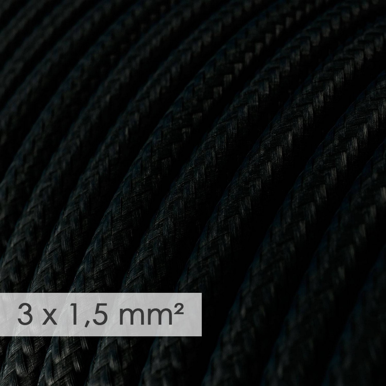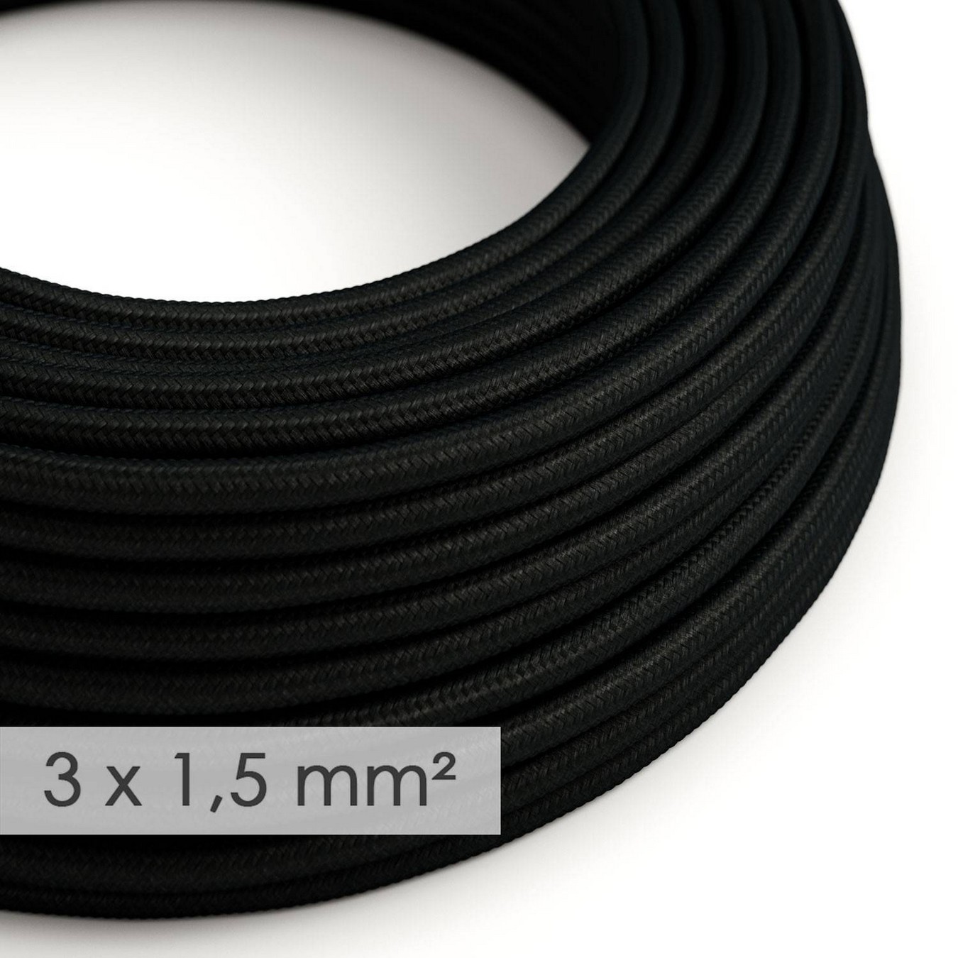 Potřebujete více elektřiny? Tento textilní elektrický kabel s průměrem 3×1,5 – umělý hedváb RM04 černý, je ideální všude tam, kde chcete přivést elektřinu k vašim svítidlům a kabel má vypadat hezky.