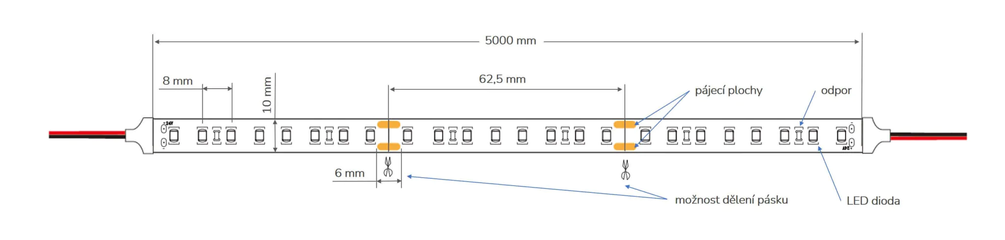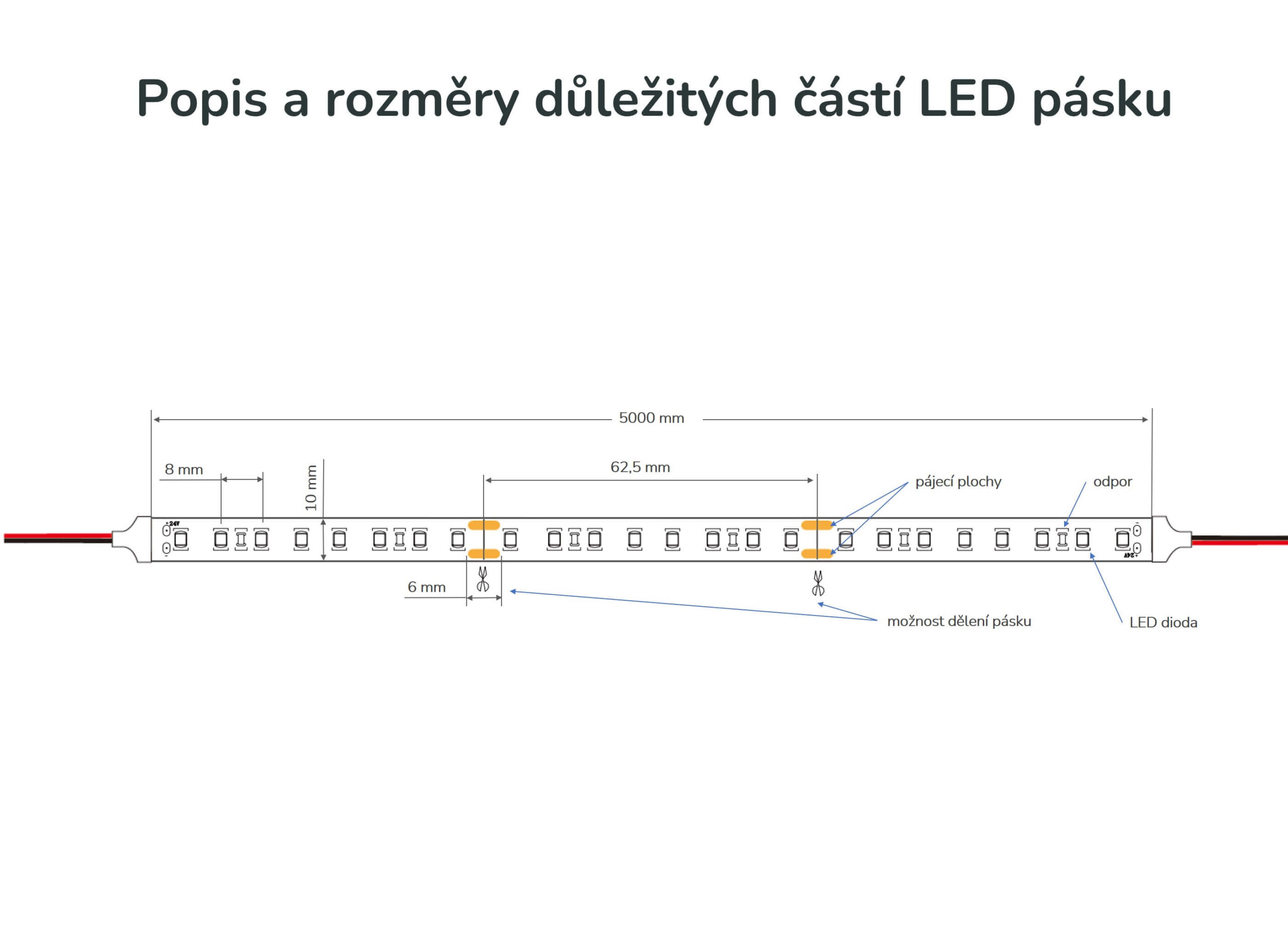 Popis a rozměry důležitých částí LED pásku