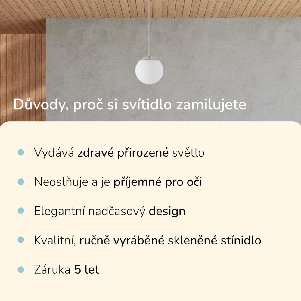 U všech našich produktů dbáme na to, aby byly kvalitně vyrobené a mohli jste se na ně maximálně spolehnout. A jinak tomu není ani v tomto případě. Základem jsou kvalitní materiály – svítidlo je vyrobené z třívrstvého skla TRIPLEX OPAL s matovaným povrchem a lakované ocelové základny. To ale není všechno. Skleněná stínidla ručně vyrábí čeští skláři, takže každé je originál. Díky tomu má svítidlo luxusní vzhled, který ocení všichni milovníci kvalitního designu a nadčasovosti.