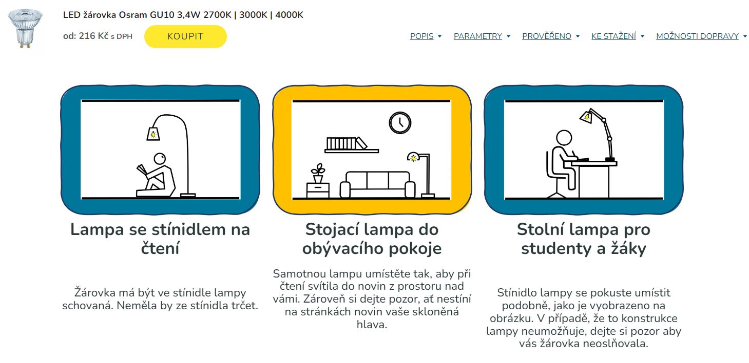 Chcete ve vašem domově či kanceláři používat zdravé osvětlení? Pak jsou pro vás naše LED žárovky jasnou volbou. Díky vysokému indexu podání barev (CRI) se světlo, které žárovky vydávají velmi podobá přirozenému slunečnímu svitu. Svícení těmito LED žárovkami má tak pro vaše fyzické i psychické zdraví mnoho benefitů. Abychom vám usnadnili volbu té správné LED žárovky, připravili jsme pro vás 5 kritérií, která vám výběr usnadní. Zobrazit více Nevíte si rady, jakou žárovku vybrat? Nevěšte hlavu. Popsali jsme pro vás 5 hlavních kritérií, díky kterým se v naší nabídce snadno zorientujete. Patice a závity LED žárovek jsou bezpochyby základním kritériem při jejich výběru. Při špatném výběru totiž nebudete moci novou žárovku do vašeho svítidla vůbec použít. Pečlivě si tedy zkontrolujte, pro jaký typ žárovky je objímka svítidla přizpůsobena. Žárovku se závitem poznáte tak, že se do objímky svítidla šroubuje. Naopak žárovka s paticí má dva výstupky, které se do objímky zasouvají a následně se žárovka upevní pootočením. Na obrázku jsou znázorněny 3 nejčastěji používané typy LED žárovek, tedy se závitem E27, závitem E14 a paticí GU10. Číslo u označení závitu (například E27) představuje jeho průměr v milimetrech, číslo u patic (například GU10) pak značí vzdálenost mezi dvěma výstupky. Obě veličiny udávají, jaké množství světla LED žárovka vyzařuje. Zjednodušeně lze říct, že s rostoucí výkonností stoupá i světelný tok. A právě tyto parametry jsou stěžejní pro to, do jakých prostor je žárovka určena. LED žárovky vyzařující větší množství světla doporučujeme používat pro osvětlení místností, kde se váš zrak musí soustředit. Například plnospektrální LED žárovka Emos E27 7,2W 4000K se skvěle hodí pro nasvícení stolu v pracovně nebo dětském pokoji. Vytvoří totiž dostatečné množství světla, díky kterému se budete moci lépe soustředit a váš zrak se nebude tolik namáhat. Naopak při večerním relaxování před spánkem tolik světla potřebovat nebudete. Bohatě vám proto bude stačit například LED žárovka Emos E27 4W 2200K, kterou můžete umístit na noční stolek v ložnici. V popisu každé LED žárovky pak naleznete část věnující se jejímu použití, kde uvádíme naše doporučení v podobě ikon pro její umístění. Tento parametr, nazývaný také jako teplota chromatičnosti, má úzkou spojitost s doporučenou dobou používání. Ve vaší domácnosti nebo podniku byste měli mít 3 odlišné světelné scény rozdělené podle jednotlivých částí dne. LED žárovky s teplotou barvy v rozmezí 4000K-6500K používejte během rána, dopoledne a časného odpoledne. Tyto LED žárovky spadají do kategorie svítidel určených pro denní svícení. Během večera, v době před spánkem a po čas polední pauzy doporučujeme používat LED žárovky bez nebo se zanedbatelným množstvím modré složky světla (večerní svícení). Tyto LED žárovky mají teplotu chromatičnosti v rozmezí 1600 K–2400 K. Stejný typ žárovek s teplotou barvy mezi 1600 K–2400 K pak používejte i pokud se například probudíte během noci. Zvolte však nízkou intenzitu osvětlení (noční svícení). Pro denní svícení pak doporučujeme zvolit žárovky s teplotou barvy v rozmezí 4000 K–6500 K. Díky vysoké teplotě chromatičnosti zvyšují koncentraci a přispívají k větší produktivitě. Na obrázku pak můžete vidět, jak se s rostoucí teplotou barvy mění vyzařované světlo z teplé žluté na studenou bílou. Kromě žárovek, jež lze zapínat a vypínat v naší nabídce naleznete i chytré LED žárovky. Ty pomocí ovládání v aplikaci umožňují měnit intenzitu osvětlení (stmívatelnost) a teplotu chromatičnosti barvy. V předchozím bodě jsme se zmínili o tom, že pro každou domácnost doporučujeme 3 odlišné světelné scény. Inteligentní LED žárovky s možností změny teploty barvy a intenzity osvětlení spadají do kategorie svítidel pro celodenní svícení, neboť umí vytvořit scénu pro denní, večerní i noční osvětlení. Na videích níže si můžete prohlédnout, jak chytré LED žárovky Philips Hue E27 7W 2200-4500K a SUN@Home GU10 4,9W 2200-5000K dokážou měnit teplotu barvy světla a intenzitu osvětlení. Pokud chcete mít ve vašem domově inteligentní osvětlení, můžete chytré LED žárovky ovládat přes řídící systémy. Ty vám pomocí mobilní aplikace umožní ovládat svítidla ve vašem domově odkudkoliv, třeba i když budete na dovolené. Dále si díky tomu můžete svítidla ve vašem domě rozdělit podle jednotlivých místností, pro které si lze vytvořit odlišné světelné scény. Jeden člen rodiny tak může relaxovat při nízké teplotě barvy (například 2000 K) v obývacím pokoji, zatímco druhý se může soustředit na vypracování projektu v pracovně při vyšší teplotě barvy světla (4000 K). 5 hlavních kritérií pro výběr LED žárovky